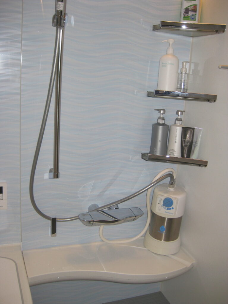 お客様が以前から使用していた。AMWAY浴室浄水器も取り付けました。