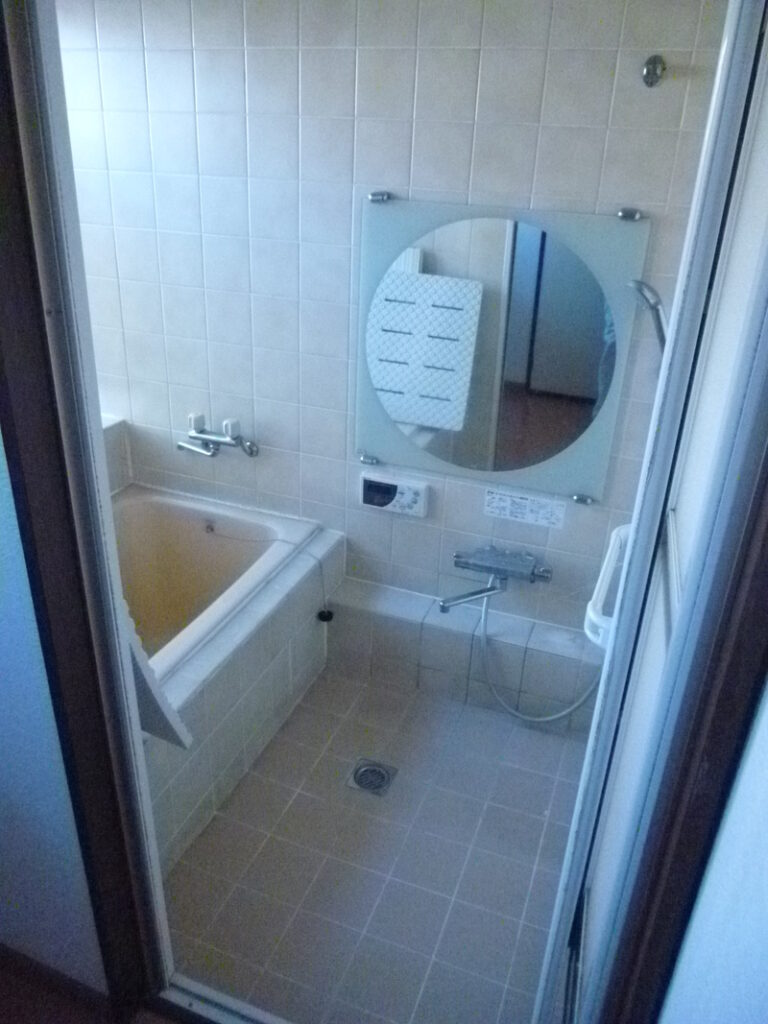 本来1216サイズの浴室を洗面脱衣室を削り1316サイズの浴室をセットしました。