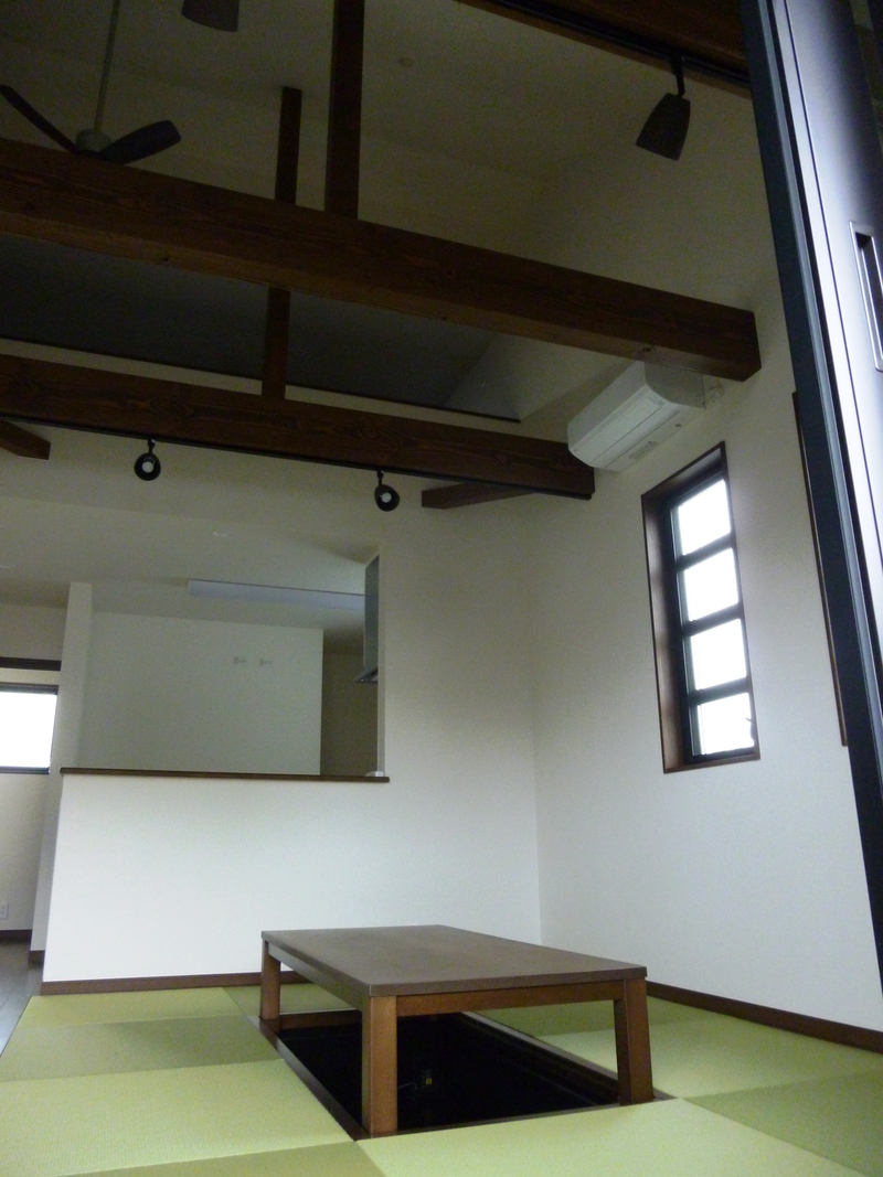 縁なし畳部分に堀コタツをもうけた和モダン住宅