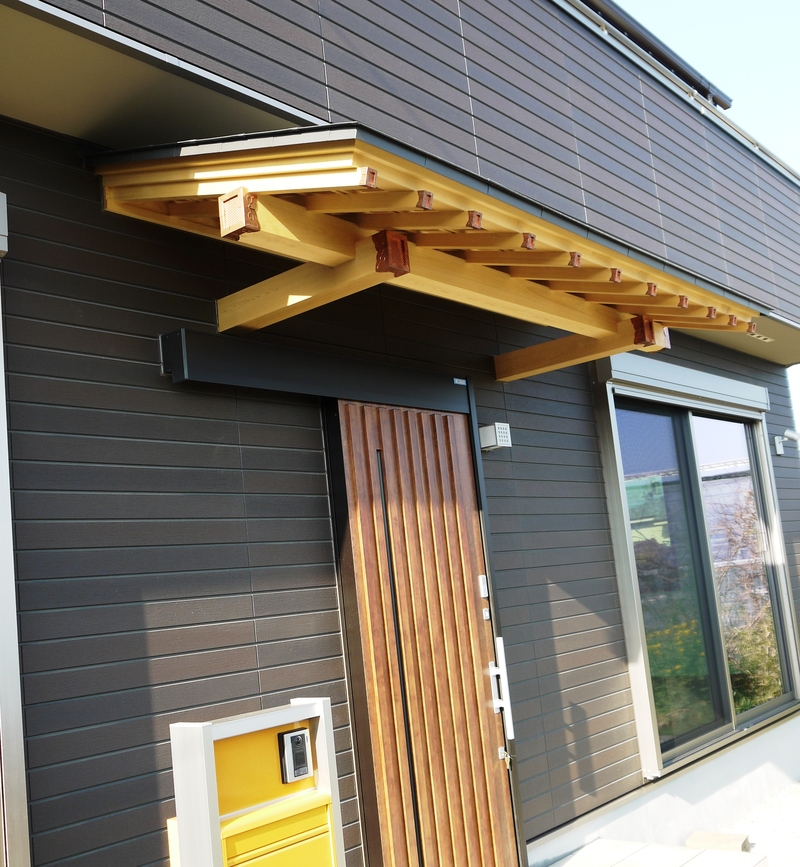 玄関の化粧ひさし、リビング大黒柱、本格和室をもうけました。